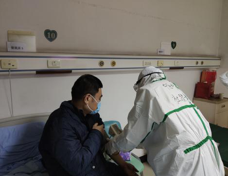 “每天穿着密不透气的防护服,送饭、测体温、喷消毒液、清扫、记录身体症状、与他们聊天减轻他们的心理压力、每天把所有被子浸泡在消毒液里,手动拧干......”这些是隔离区医护人员的日常工作,“裹着防护服很热很闷,虽然是大冬天,但每天都是一身汗,衣服浇湿。”文平说,虽然艰辛,但是他无怨无悔。