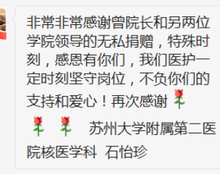 图2 苏州大学附属第二医院感谢曾海、叶良、任侃侠三位党员的无私捐赠