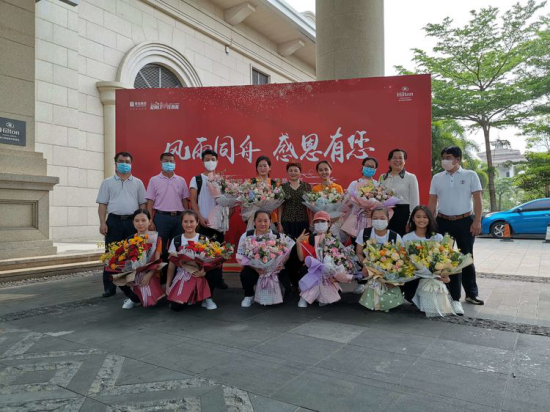 根据海南省卫建委的统一安排部署,她们于2月4日从海口出发,奔赴武汉疫区,助力武汉江汉方舱医院打赢这场疫情防控阻击战!在最危险的“火线”上日夜奋战,她们没有表现出娇气,而是用自己的实际行动生动诠释了新时代医护人员“敬佑生命,救死扶伤,甘于奉献,大爱无疆”的精神。3月17日,她们圆满完成援鄂工作任务,平安归来,按照省卫健委安排部署,集中进入定点酒店休养。今天,他们集体解除医学隔离观察,平安凯旋,院党总支吴莉娟书记带领班子成员到鲁能希尔顿酒店迎接。