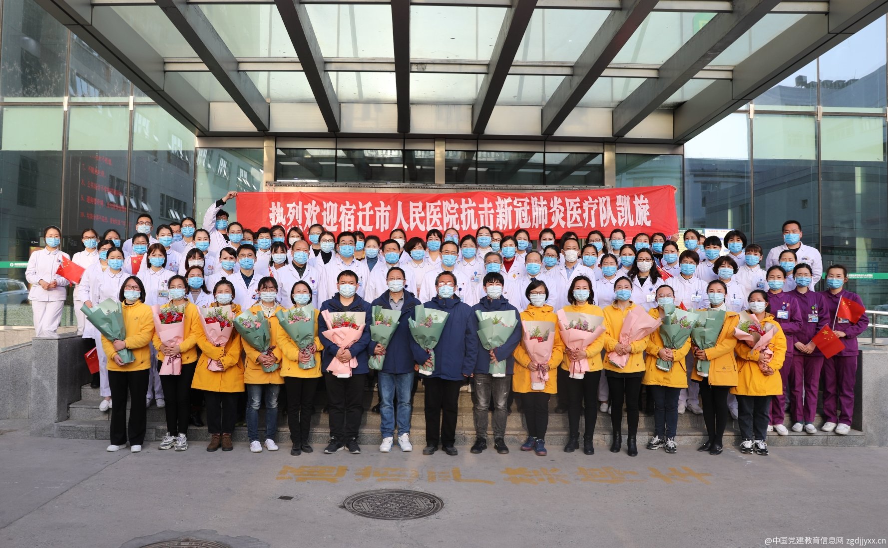 春暖花已开,阳春奏凯歌。3月20日下午,南京鼓楼医院集团宿迁市人民医院支援宿迁市传染病医院医疗队17名“抗疫英雄”圆满完成任务,在解除医学隔离观察后,回归宿医大家庭。院长张荣林、党委书记凡金田带领全体领导班子成员、全院医疗、医技、护理、和各职能科室的职工代表,在外科楼前列队,满怀激动的心情,热烈欢迎“抗疫英雄”回家!