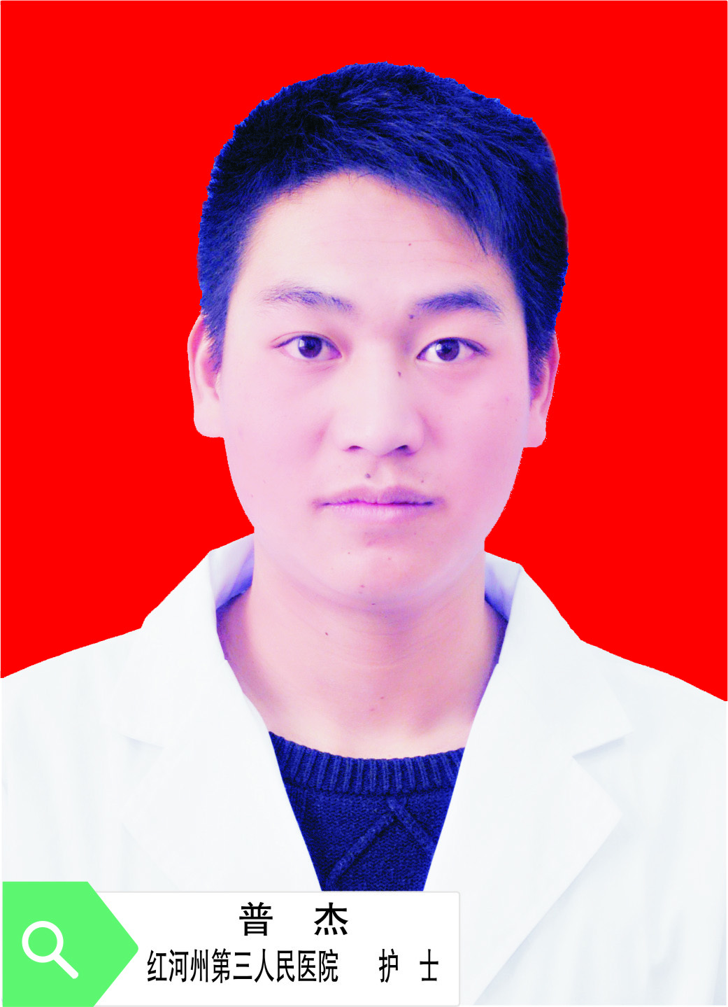 普杰,男,彝族,1995年3月出生于云南省弥勒市,大专学历,毕业于云南省保山中医药高等专科学校护理学专业,2017年7月加入中国共产党,同年7月参加工作,现为云南省红河州第三人民医院医院手术室护士。大学期间,曾担任校护理系团总支书记,曾连续两年获得校级优秀团干部荣誉证书,并在参加工作后逐步成长为科室的一员护理骨干力量。