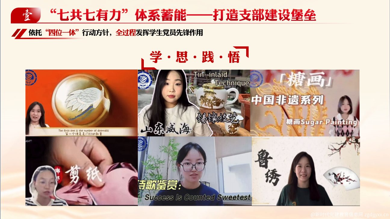 3、言之有味,绘声绘色:“小故事”讲好“大道理”。精心策划内容,推出“多语种诵读红色家书”、“我家乡的党史故事”、“中外文化对比趣谈”等系列网络产品。通过生动感人的小故事、新颖活泼的呈现方式,潜移默化地传递爱国主义、理想信念、文化自信等核心价值,为青年学生拨开思想迷雾,筑牢精神根基。支部运营的视频号因内容优质、形式新颖,获评“全国易班共建高校新媒体账号及优质思政内容培育项目”。